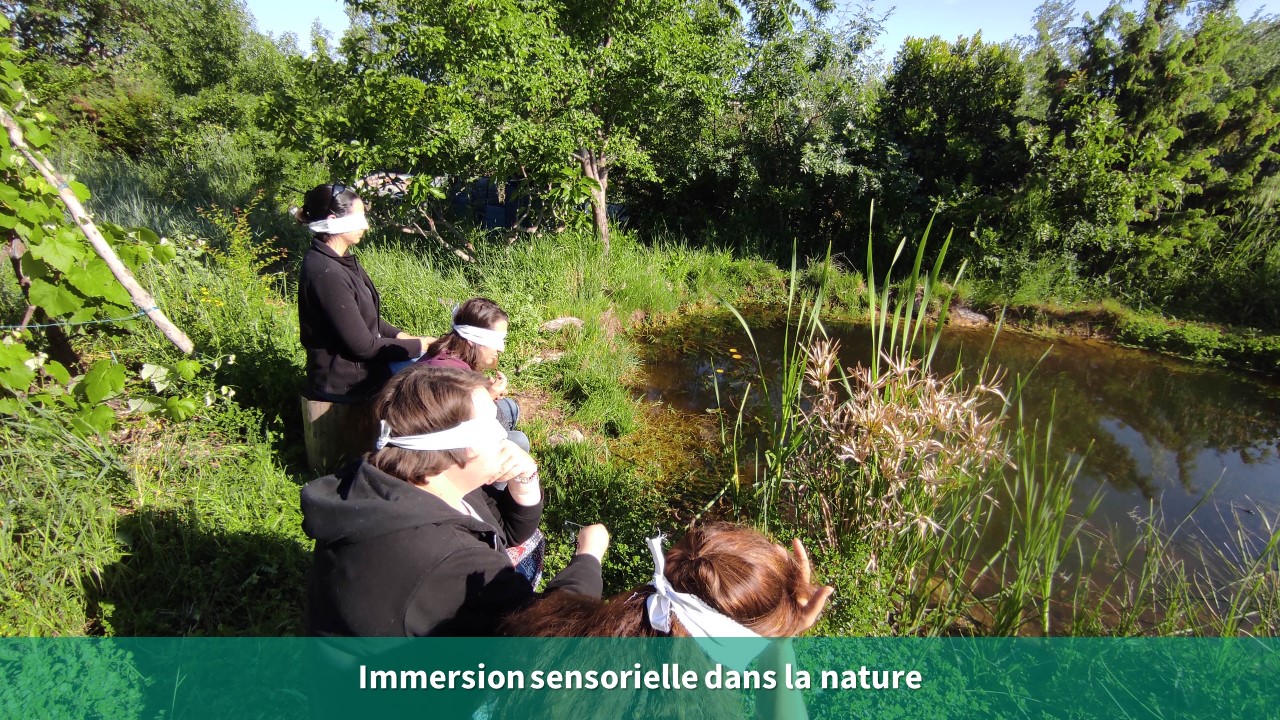 Le 6 mai 2022, l’atelier « jouer avec la faune et la flore » a réuni 5 agents territoriaux spécialisés des écoles maternelles (ATSEM). La rencontre avait pour but d’inciter les agents de l’école François Mitterrand de Montpellier à proposer des activités Nature aux enfants pendant les temps méridiens. Grâce au partenariat entre l’école maternelle et le verger partagé, bio, urbain, en permaculture mis en place par l’association VerPoPa, l’école a désormais accès à un terrain arboré. Les yeux bandés, les sens en éveil et reliées ensemble par une corde, les participantes ont pu s’immerger dans le lieu, profiter d’une découverte sonore et olfactive de cet espace. Elles ont par la suite réalisé des activités artistiques : herbiers, mobiles en éléments naturels, palettes de peintre… Les ATSEM se sentent dorénavant prêtes à proposer des activités de sensibilisation et de reconnexion à la nature avec les enfants. Cette intervention s’inscrit dans le cadre des accompagnements de projets d’éducation à l’environnement et au développement durable (EEDD) pour les communes de Montpellier Méditerranée Métropole en convention avec l’Écolothèque. Plusieurs écoles de la ville de Montpellier ont répondu à un appel à projet « accompagnement jardin » proposé par l’Écolothèque en partenariat avec le service éducation de la Ville. Pour connaître toute l’offre de formation, consultez dès la rentrée de septembre le catalogue 2022-2023 des Ateliers de l’Écolothèque.