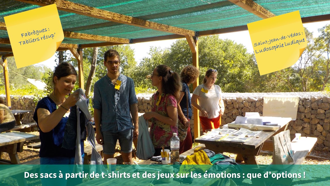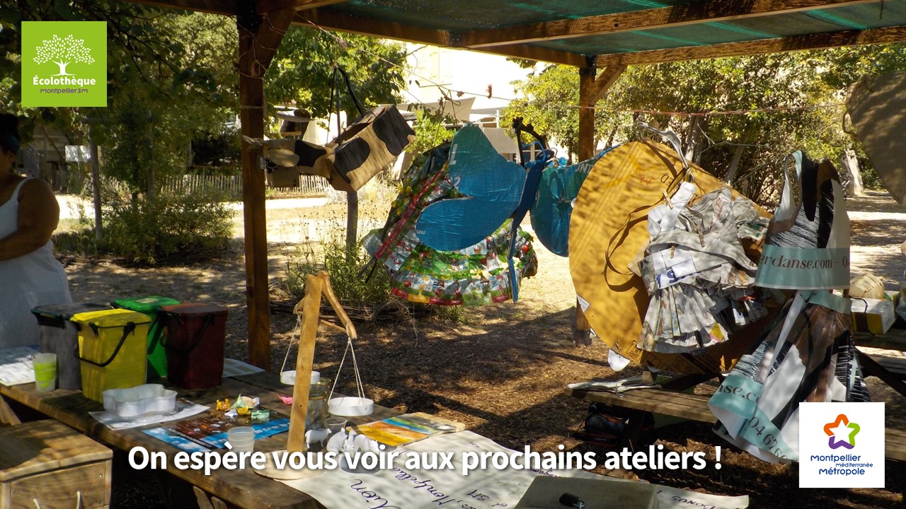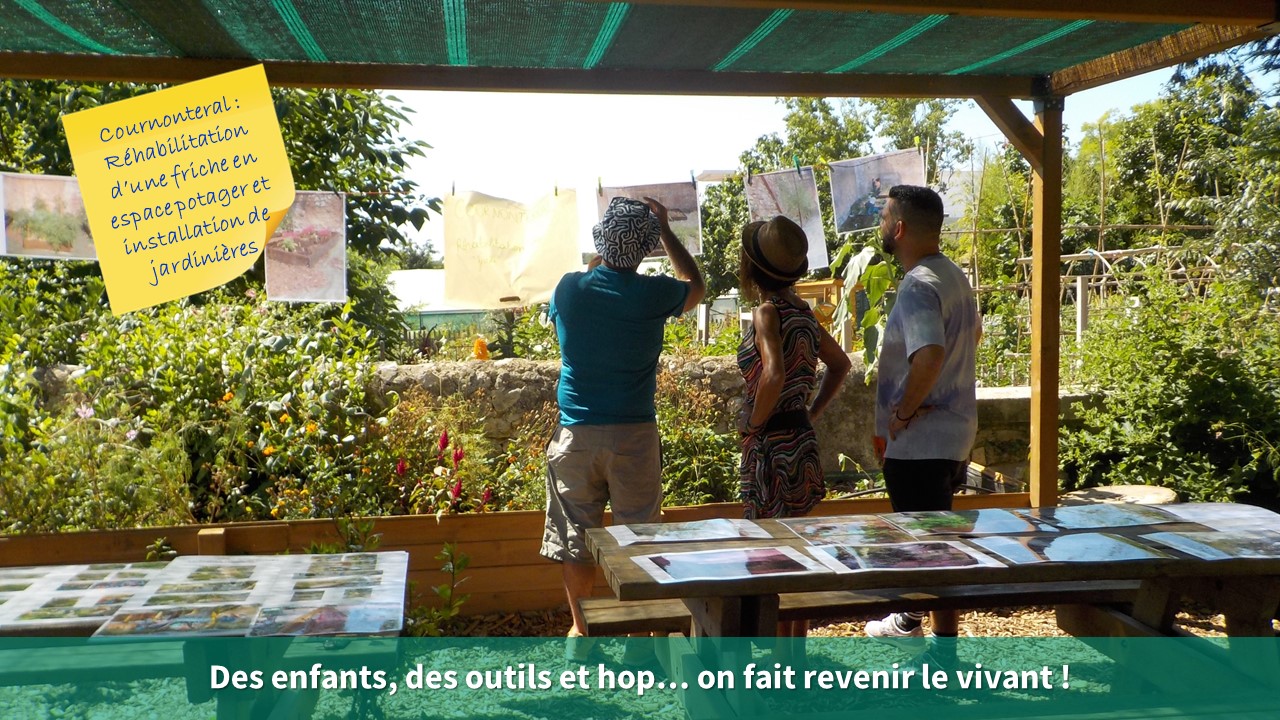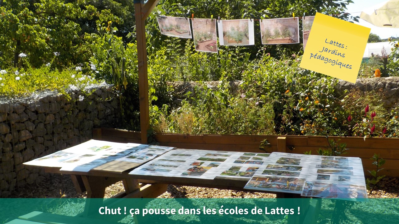 Les projets des jardins pédagogiques des communes de Cournonterral, Lattes, Grabels et Montpellier ont été mis en avant par une exposition de photos, tandis que les animatrices de Fabrègues et Pignan ont présenté leurs réalisations de tabliers, vêtements et chapeaux 100% récup’.