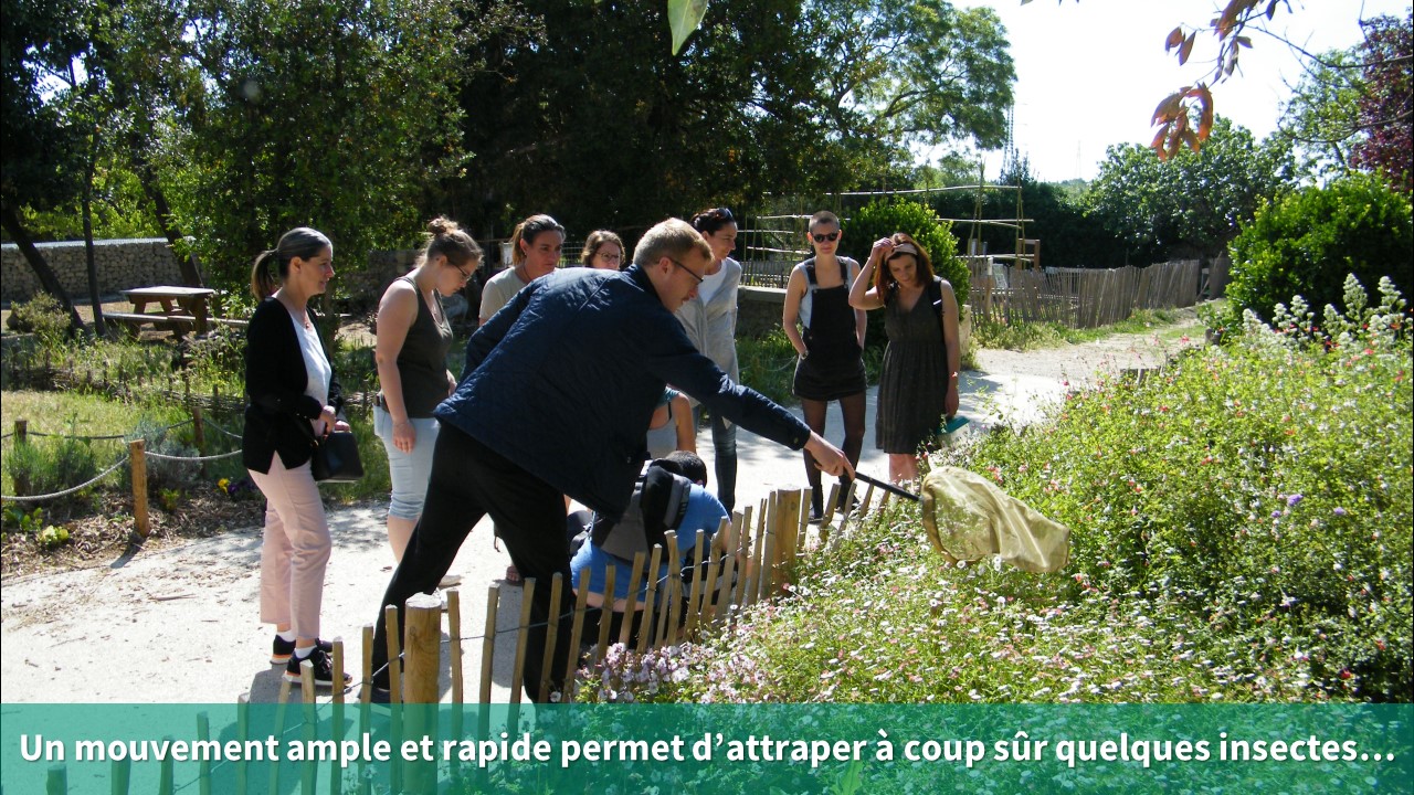 Le jeudi 23 mai, l’atelier « Accueil de la biodiversité 2 : reconnaître les auxiliaires et les ravageurs » du programme ÉcoMétropole a réuni 9 agents éducatifs des communes de Castries, Cournonterral, Fabrègues, Villeneuve-lès-Maguelone, de l’Éducation Nationale et de la Métropole. Les participants ont découvert les animaux auxiliaires qui peuplent les jardins et leurs différents rôles : prédateurs, parasitoïdes, décomposeurs, pollinisateurs ou encore ravageurs. Ils ont pu s’entrainer à capturer des insectes : osmies, syrphes, bourdons… pour les observer plus attentivement dans des boîtes-loupe. Les participants ont pris conscience qu’il était important de laisser au jardin des plantes qui attirent certains ravageurs pour qu’ils servent de nourriture aux auxiliaires (les pucerons attirent les coccinelles par exemple). Une biodiversité riche assure un jardin sain et équilibré !