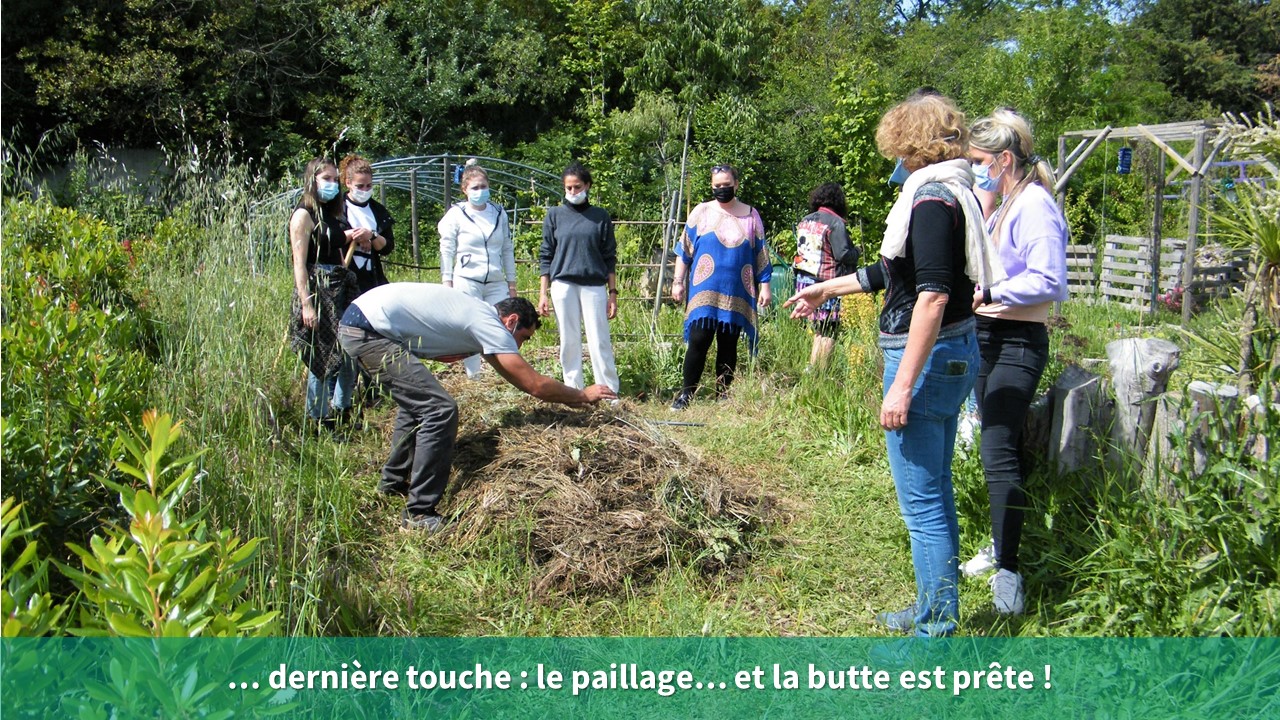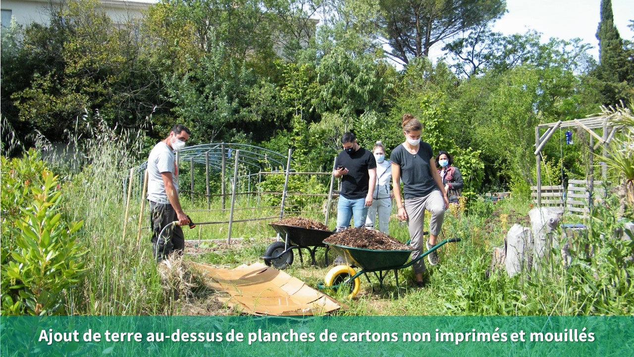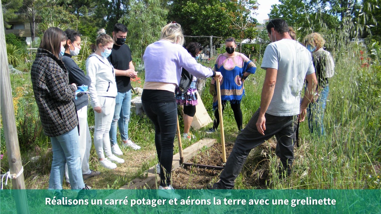 Le jeudi 20 mai 2021, l’atelier « Découverte du jardin pédagogique du centre de loisirs d’Estanove » du programme ÉcoMétropole a réuni 9 agents éducatifs des communes de Grabels, Villeneuve-lès-Maguelone et Montpellier Méditerranée Métropole. Les participants ont découvert un lieu aménagé et géré en permaculture : un mode d'agriculture fondé sur les principes du développement durable. Ils se sont initiés à la reconnaissance et aux associations de plantes et ont observé les aménagements créés avec des matériaux de récupération. Les modalités de gestion et le suivi nécessaire d’un jardin en accueil de loisirs ont été abordés. Puis, l’heure a été à la construction d’un carré potager : après avoir décompacté le sol grâce à une grelinette, ils ont superposé plusieurs couches de matériaux : carton, terre, herbes de tontes, puis ont recouvert de terre de jardin. Ce carré est destiné à accueillir de nouveaux plants méditerranéens. Ils pourront mettre en pratique ces techniques dans leur commune et prendre l’initiative d’un projet de jardin pédagogique dans leur structure. La fiche « points clés » récapitule les notions abordées, propose une bibliographie d’ouvrages disponibles à la médiathèque ainsi qu’une liste d’outils pédagogiques de la pédagothèque. Le prochain atelier « Quels nœuds pour des assemblages nature ? » est programmé le mardi 15 juin à 9h. Pour connaître toute l’offre de formation, consultez dès maintenant le catalogue 2020-2021 des Ateliers pédagogiques de l’Écolothèque.