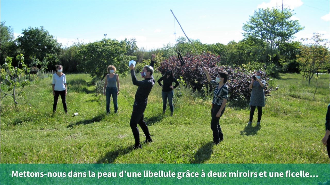 Le mardi 11 mai 2021, l’atelier « Petites bêtes et leur milieu de vie » du programme ÉcoMétropole a réuni 8 agents éducatifs des communes de Cournonterral, Lattes, Pérols et Montpellier Méditerranée Métropole. Les participants ont découvert les caractères morphologiques spécifiques de certaines petites bêtes comme les fourmis, les coccinelles ou les abeilles en s’intéressant à leur alimentation et leur cycle de vie. Ils ont expérimenté les particularités des insectes grâce à une approche pratique : voir à 360° comme une libellule, se diriger par l’odorat, ou encore ramper et reconnaître des plantes au toucher. Grâce au matériel de récolte : filet, fauchoir, aspirateur à insectes, boîte loupe… ces agents ont pu appréhender le monde des petites bêtes : les observer, les identifier, afin de mieux les connaître pour mieux les protéger. Ils pourront ainsi mettre en pratique ces techniques d’animation pour les enfants de leur commune et organiser des activités autour de cette thématique. La fiche « points clés à retenir » récapitule les notions abordées, propose une bibliographie d’ouvrages disponibles à la médiathèque ainsi qu’une liste d’outils pédagogiques de la pédagothèque. Le prochain atelier « Visite pédagogique du site naturel protégé du Méjean (Lattes) » est programmé le mardi 1er juin 2021 à 9h. Pour connaître toute l’offre de formation, consultez dès maintenant le catalogue 2020-2021 des Ateliers pédagogiques de l’Écolothèque.